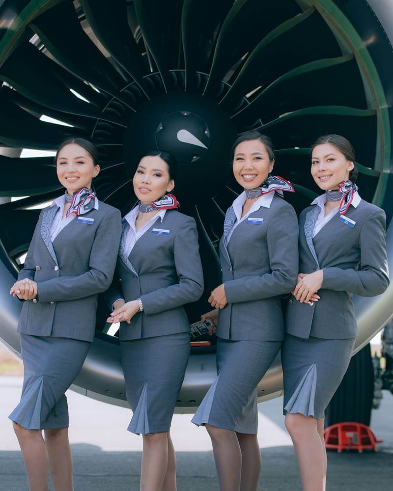 Check out these pictures of Air Astana crew so you can see what they look like in uniforms: