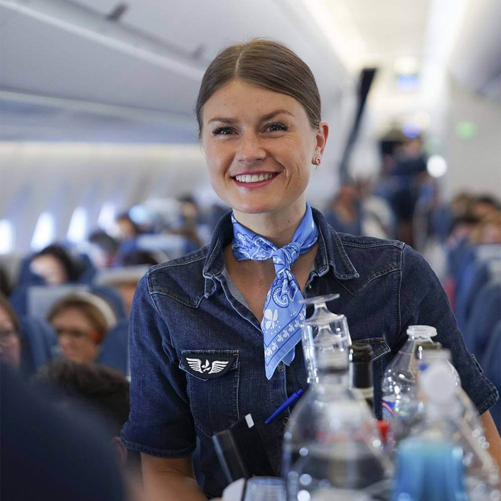 french bee female flight attendant smile