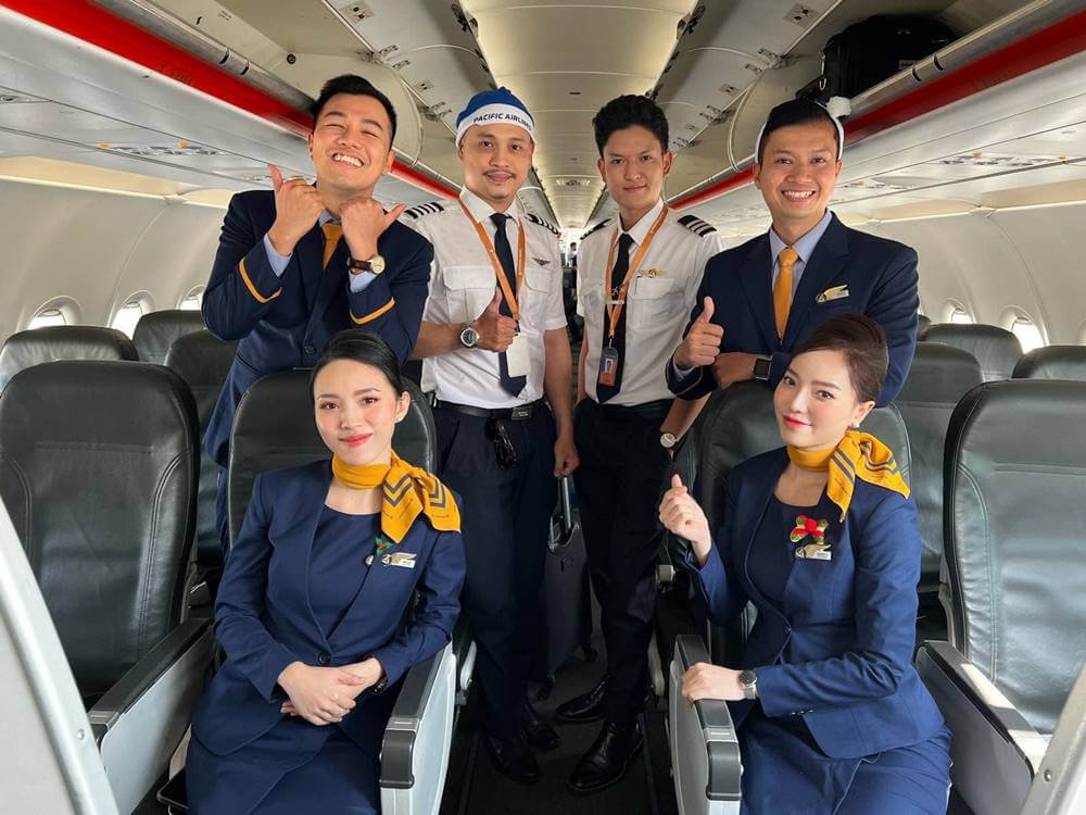 Check out these pictures of Pacific Airlines crews so you can see what they look like in uniforms: