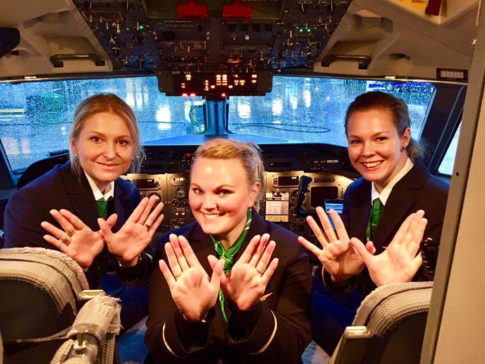 Wideroe flight attendants celebrate