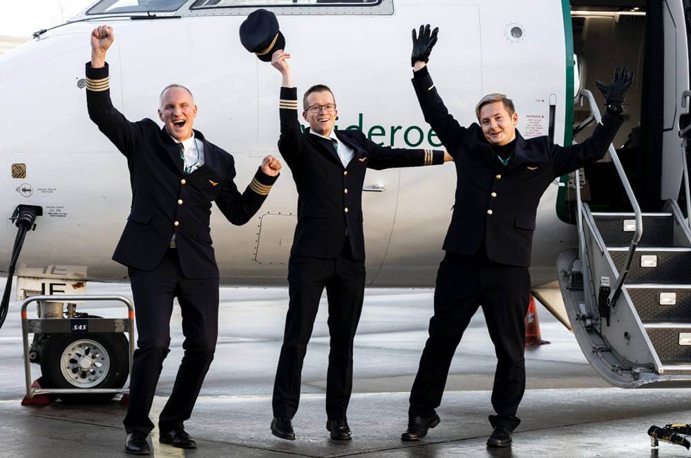 Wideroe pilots and male flight attendant